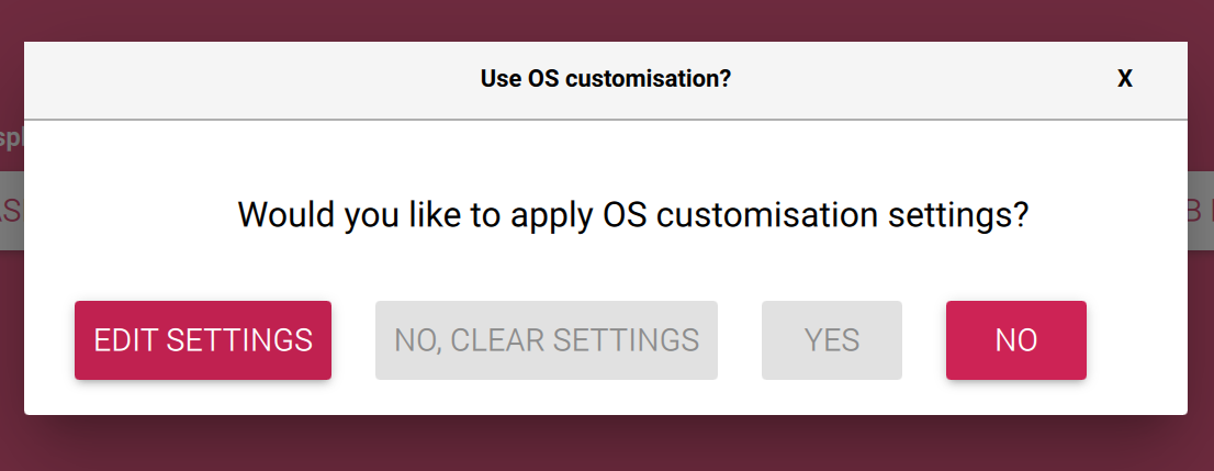 A box labelled "Use OS customisation?" will appear. Click on EDIT SETTINGS
